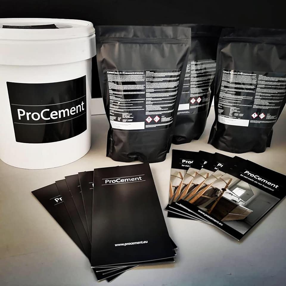 ProCement Oberflächen werden auf jeder gewünschten Flächengröße fugenlos und ansatzfrei aufgebracht. Eine spezielle Kopfversiegelung sorgt für zusätzliche Stabilität und Reinigungsfähigkeit und kann nach Jahren der intensiven Nutzung ähnlich einem lackierten Holzboden, neu versiegelt werden. Die wasserfeste und pflegeleichte Oberfläche ist sowohl für Wohnräume und Nassbereiche bestens geeignet, als auch für Möbelfronten, Küchenarbeitsplatten und Türen.